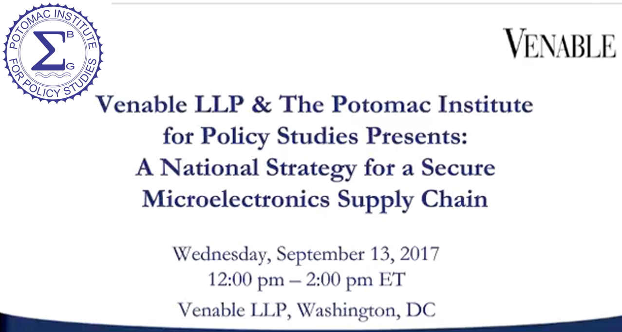 On September 13, 2017, The Potomac Institute for Policy Studies VITAL Center cohosted a seminar with Venable LLP on, "National Strategy for a Secure Microelectronics Supply Chain". Microelectronics are key components in our defense systems, and assuring that they are both trusted and secure is critical for US national security. In today’s global electronics supply chain, hardware and software vulnerabilities are increasingly prevalent, and a whole-of-government solution is needed to ensure a long-term domestic capability. A solution must exist at every stage of the supply chain to include research and design; production; supply, stock, and store; and deployment. Speakers included: Mr. Terry Halvorsen, former DOD Chief Information Officer and Chief Information Officer at Samsung Worldwide; Mr. Ari Schwartz, former Special Assistant to the President and Senior Director for Cybersecurity, and Director of Cybersecurity Services at Venable; and Mr. J. Michael Daniel, President, Cyber Threat Alliance, and Former White House Cybersecurity Advisor.