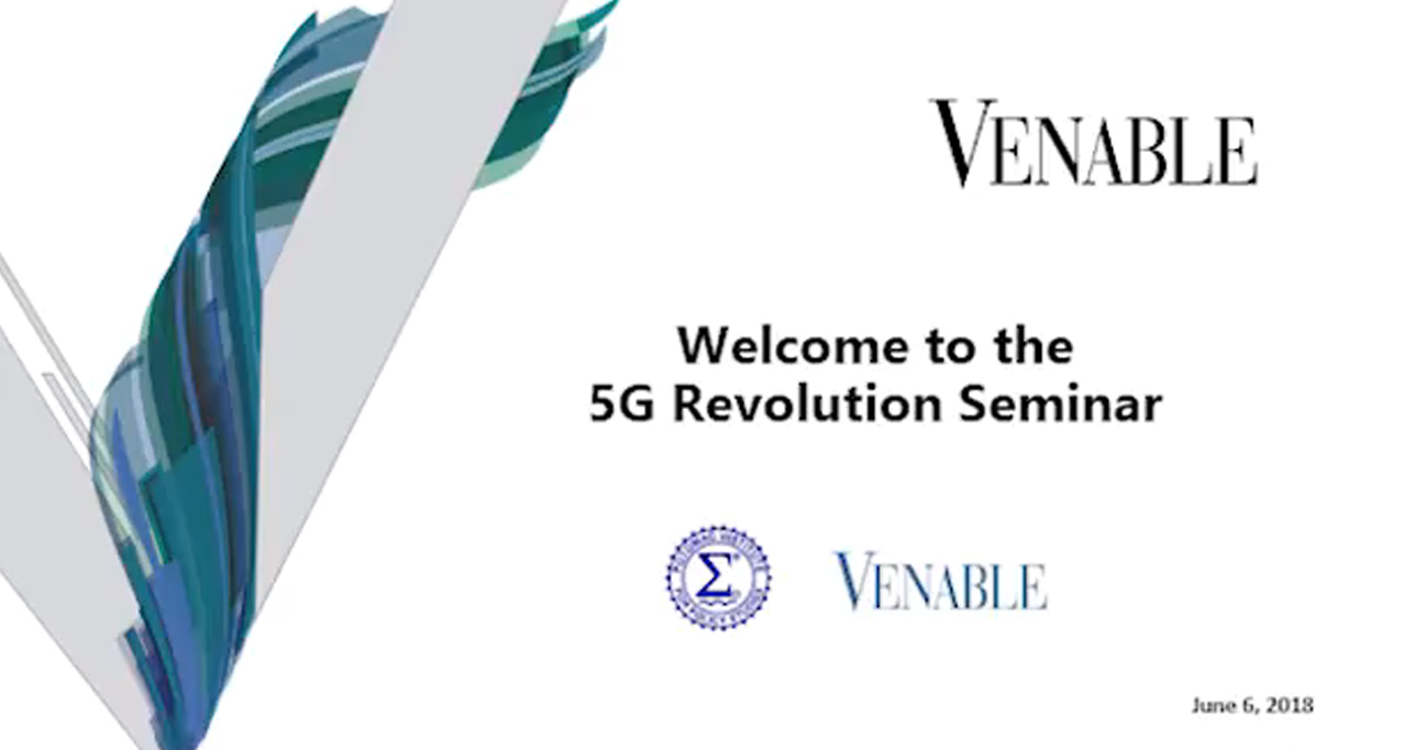 On June 6th, 2018, The Potomac Institute for Policy Studies VITAL Center cohosted a seminar with Venable LLP on “The Coming 5G Revolution”. Topics discussed included policy questions and recommended actions for the rapid adoption of a 5G network, with input from a distinguished panel of government and industry experts. Mr. Terry Halvorsen, Executive Vice President of Samsung and CIO/IT and Mobile B2G provided the keynote, with further input from representatives of Nokia, KMPG, Samsung, The Institute of Cyber Law, and Venable LLP. Dr. Michael Fritze of the Potomac Institute for Policy Studies and Director of the VITAL Center at the Potomac Institute moderated the discussion.